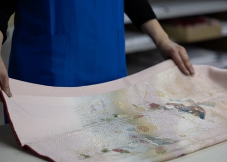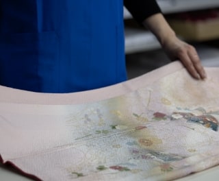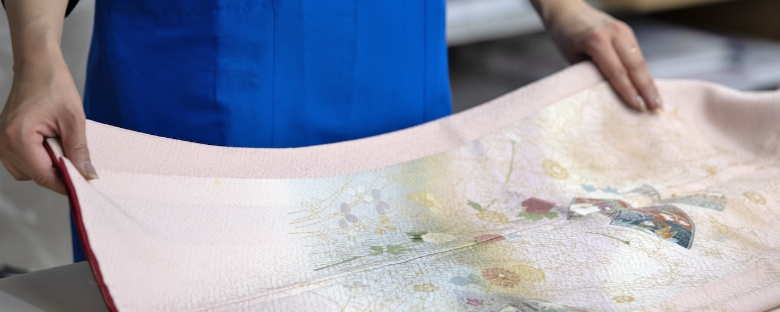 お客様の大切なお着物を職人が一枚一枚すみずみまで入念に検品し、お客様のお着物にとってどうするのが一番良いかを見極め、長年の知識と経験、技術に基づいた信頼ある加工をご提案させて頂きます。