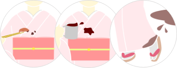 [左]気が付かないうちに醤油?のシミが、、(画像真ん中、右上)
