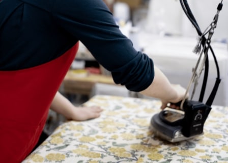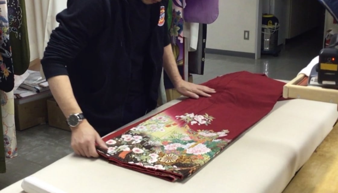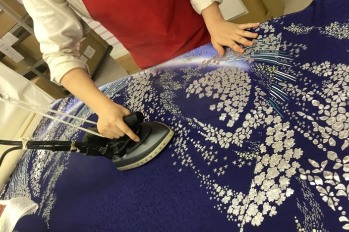 各工程を終えたお着物を、丁寧にプレス仕上げをしていきます。