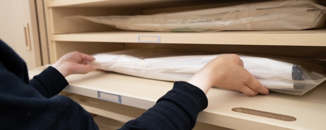 一年以上のお預かり品に関してはシルクパック(脱酸素剤による無酸素状態)に入れての保管、管理をしていますので、陰干しの心配はございません。
