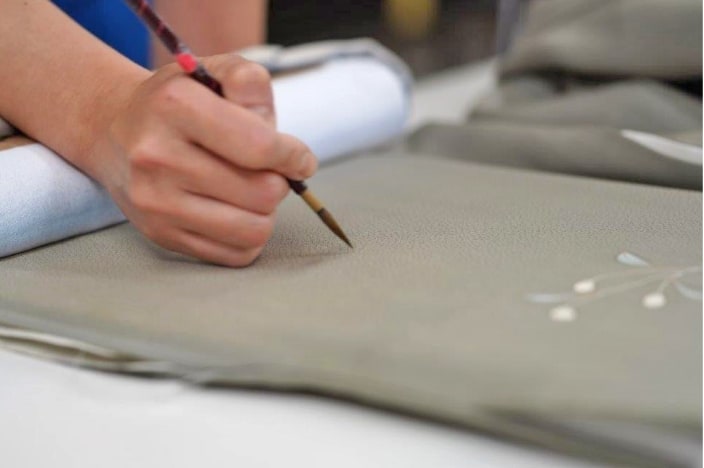 衿・袖口・裾を中心に職人が丁寧にブラッシングしていきます。